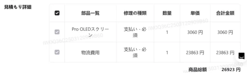 発送から3日ほど経ったところで、修理見積が提示されました。
